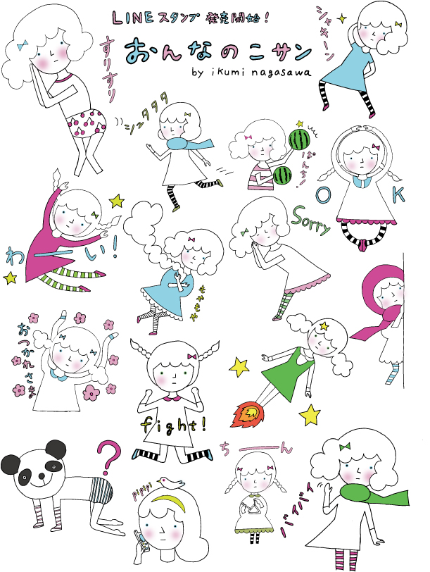 昨年の6月に作ったLINEスタンプ「おんなのこサン」がやっと承認され、リリースしました!