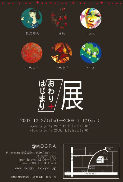 MOGRAでの【おわり+はじまり展】12日、19;00~Closing Partyです。